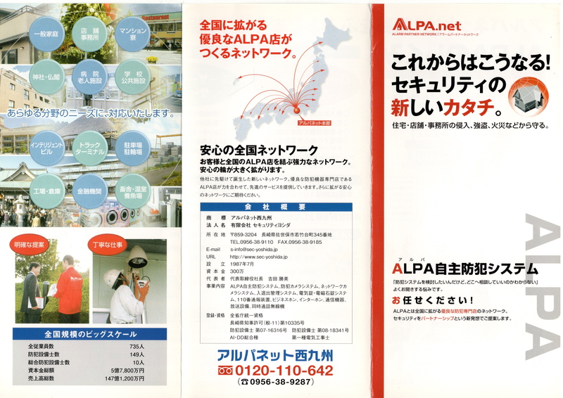 セキュリティヨシダは「アルパネット西九州」としてアルパネットグループのサービスを提供しています。